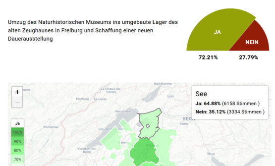 72.21 Prozent der Stimmberechtigten im Kanton Freiburg stimmten in der einzigen kantonalen Vorlage an diesem Wochenende für den Umzug des Naturhistorischen Museums ins umgebaute Lager des alten Zeughauses in Freiburg. Im Seebezirk stimmten total 6158 Bürger*innen für die Vorlage, das entspricht einem Ja von 64.88 Prozent.