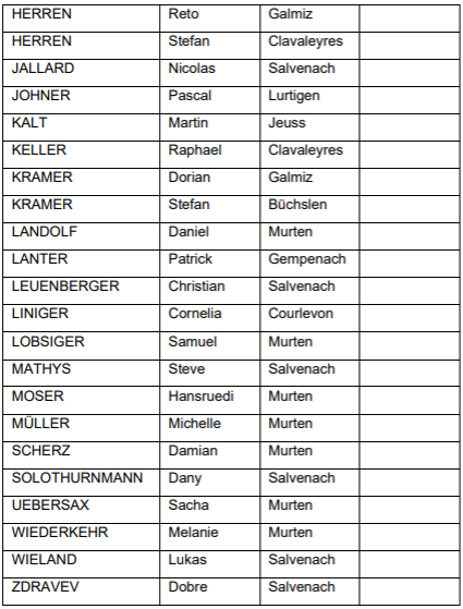 Anlässlich der Nominationsversammlung der SVP/UDC und Unabhängige Murten Region vom 26.11.2025 wurden die 50 Kandidatinnen und Kandidaten für die kommunalen Wahlen vom 8. März 2026 präsentiert.