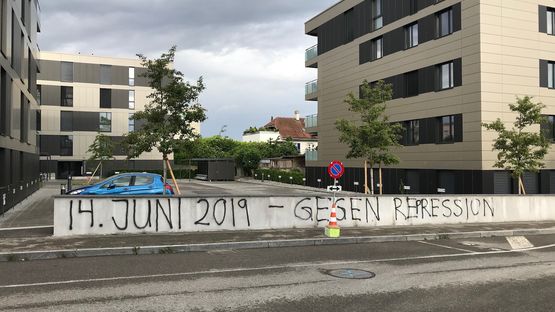 In diversen Städten in der Schweiz wurde gestern gestreikt. Themen gab es diverse, doch im Mittelpunkt standen ganz allgemein die Frauenrechte und die Gleichberechtigung der Frau. Im Vergleich zu Zürich, Bern und anderen Städten, wo die omnipräsente Diskussion grosse Paraden und Demonstrationen hervorrief, blieb es in Murten ruhig. Trotzdem gab es vereinzelt Aktionen. Die Sprayereien, die auf den Bildern zu sehen sind, befinden sich am Anfang der Engelhardstrasse.