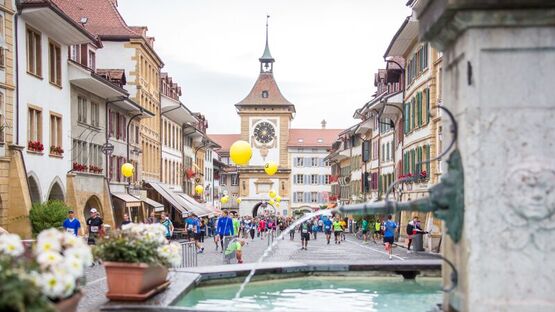 Der Murtenlauf - mit einem Budget von ungefähr einer Million Franken - wurde 1933 auf Initiative von Beda Hefti, Gründer des organisierenden Vereins CA Fribourg, ins Leben gerufen. Auf einer Distanz von 17,17 Kilometern verbindet er Murten mit Freiburg, zum Gedenken an die Schlacht von Murten und den Sieg der Eidgenossen gegen die Armee von Karl dem Kühnen im Jahre 1476. Der Lauf wurde nur ein einziges Mal annulliert und zwar 1939 aufgrund der Generalmobilmachung zum Ausbruch des Zweiten Weltkrieges.