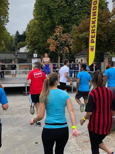 Kilometer 1: Im Merlachfeld, bei der Rolandfabrik haben wir den ersten Kilometer bereits geschafft. Ein ideales Einlaufen auf dem noch flachen, sogar leicht abfallenden Gelände.