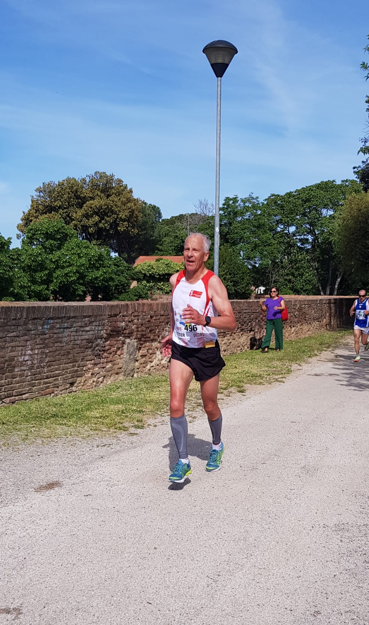 Der Höhepunkt der Europameisterschaft ist der Halb-Marathon am Sonntag. Die Bedingungen waren wesentlich angenehmer als beim 10km-Lauf am Freitag. Nach dem Start führte die Strecke aus der Stadt heraus, um den Flughafen von Grosseto, durch schöne Landschaften und kleine Dörfer. Der Höhepunkt war die Runde den alten Stadtmauern entlang, bevor die Strecke wieder zum Ziel in die Stadt zurückführte.