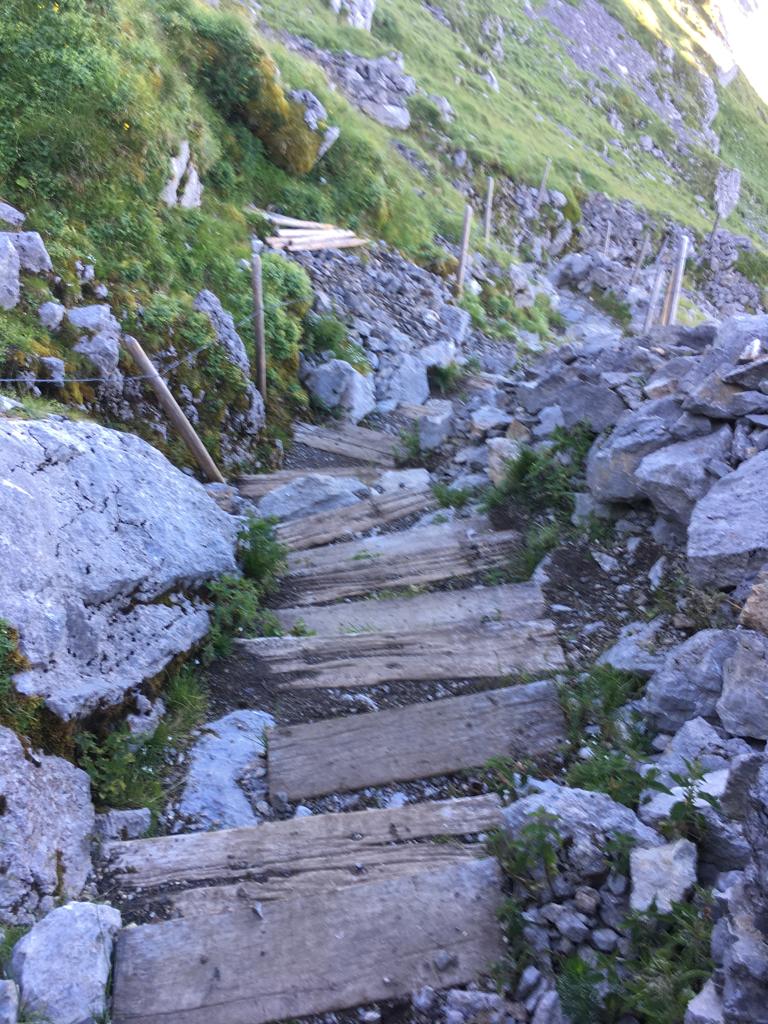 Auf dem Rückweg begegnen wir einem Ornithologen, der uns erzählt, dass er hier oben eine grosse Population Gänsegeier beobachtet. Diese Vögel haben eine Flügelspannweite von 2,6 Meter und finden über der Kaiseregg einen Lebensraum, der ihnen entspricht. Heimwärts wandern wir über die Salzmatt zur Alp-Schaukäserei Riggisalp. Weiter zum unteren Bödeli und von dort wieder zur Gypsera.