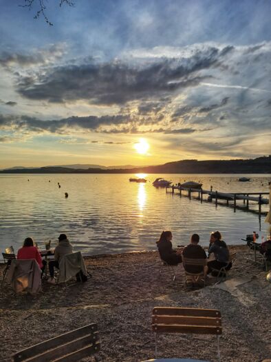 Ob ich von der Murtner Pantschau über den Strandweg in Richtung Muntelier spaziere oder durch den Staatswald Chablais von der Vully-Seite über den Naturerlebnispfad wandere – der Camping Muntelier ist ein willkommener Zwischenhalt. Auch wenn ich auf zwei oder vier Räder unterwegs bin, lohnt sich ein Abstecher an den See allemal; Parkplätze sind vorhanden.