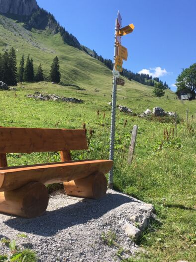 Wenn sich der Hunger bemerkbar macht, ist das Berggasthaus mit feinen Menus in Armeslänge. Auch eine schöne Grillstelle mit einem grossen Tisch lädt zum Picknick ein.