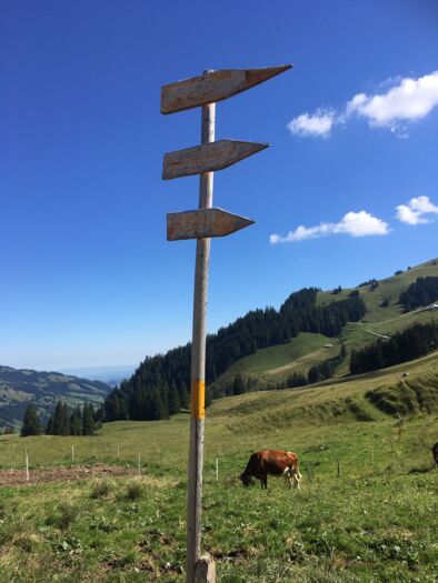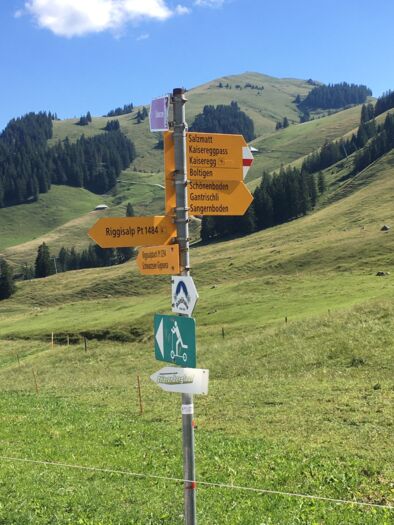 Unsere Wanderung führt nun über Unterer Euschels und das Untere Bödeli wieder der Gypsera zu. Gerade für Kinder ist die Riggisalp eine spannende Sache. Mit der Schaukäserei, dem Spielplatz und dem Riggli Weg wird mehr als ein Tag gefüllt. Auch für ältere Menschen ist die Riggisalp geeignet. Die Wege sind asphaltiert und von der Gypsera kann auch gemütlich die Sesselbahn benutzt werden. Für anspruchsvollere Tourengänger locken die Kaiseregg, die Brecca oder die Spitzflue und die Riggisalp wird zur angenehmen Zwischenstation, wo wieder aufgetankt werden kann.