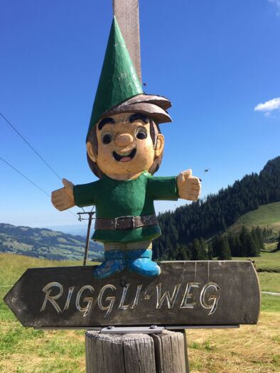 Weiter gibt es auf der Riggisalp den Lehrpfad Riggli Weg mit dem Zwerg Riggli. Auf einer Distanz von 2 Kilometern können 9 Totempfähle mit interessanten Themen über erneuerbare Energien entdeckt werden. Spannend und kindgerecht wird die Verbindung zwischen Natur, menschlicher Arbeit und Energie geschaffen. Näheres über den Spielplatz und den Riggli Weg können Sie auch über die Website erfahren.