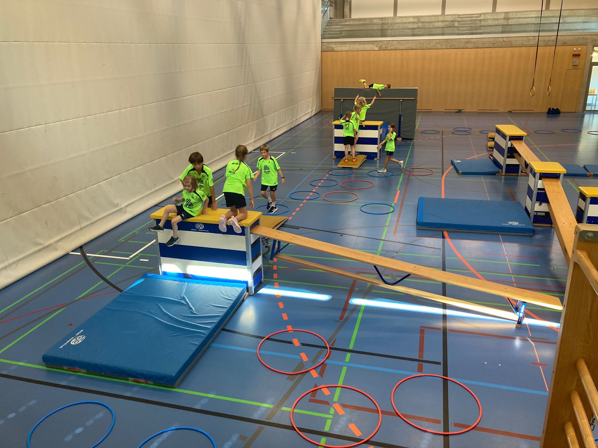 Auf der Sportanlage der Orientierungsschule Region Murten rannten 70 Kinder und Jugendliche den Bällen hinterher, schlugen Saltos, lachten und entdeckten gemeinsam neue Sportarten. Dazu wurden die 70 Kids aus Bösingen und Umgebung in altersgerechte und wunschgemässe Gruppen eingeteilt. Nebst viel Neuem konnten sie auch ihre schon vorhandenen Fertigkeiten weiterentwickeln, sich dabei gegenseitig anfeuern und Spass beim Spielen haben. Der Startschuss in den Tag fiel jeweils um 10:00 Uhr. Nach dem morgendlichen Begrüssungsritual waren alle bereit und gespannt, was sie am Tag erwarten würde. Das tägliche Programm dauerte jeweils bis 16:00 Uhr und enthielt zwei Trainingseinheiten mit einem topmotivierten Trainerteam. Dabei stand der Spass stets im Zentrum.