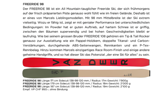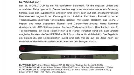 In VAN DEER-Red Bull Sports steckt jedoch viel mehr als die Summe der in der Vergangenheit gesammelten Erfolge. Die Fusion der besten Köpfe steht in Zukunft für die erfolgreiche Entwicklung und die Produktion von Sport- und Freizeitgeräten mit Fokus auf Ski für alpine und nordische Disziplinen sowie Rennsport-Ski für alle – egal ob Freerider, Skitourengeher oder Racer. Für jeden Schweizer Berg hat VAN DEER-Red Bull Sports den passenden Ski.