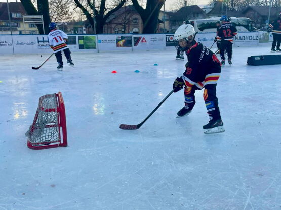 Für die anderen ging es beispielsweise darum, richtig bremsen zu lernen. Oder bei der Puckführung den Kopf oben zu halten und nicht auf das Eis zu schauen, um Unfälle zu vermeiden. Ausserdem haben wir uns Pass- und Schusstechnik angeschaut.