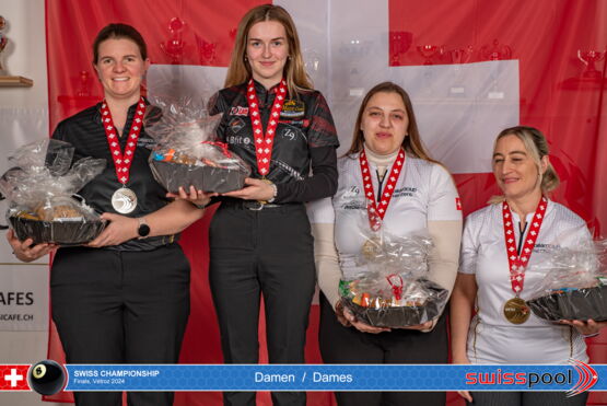 Erstmals bei den Damen Schweizermeisterin wurde die Seebezirklerin Shirin Volery (17) aus Kleingurmels. Sie reiste am selben Tag erst von den Heyball Weltmeisterschaften in Indien an holte sich die Disziplin 8er Ball (unsereRegion berichtete: Billard: Shirin Volery wurde Vizeweltmeisterin und Schweizermeisterin zum Saisonabschluss). Auch sie wurde noch geehrt für ein sehr erfolgreiches Jugend Jahr mit Europameistertitel sowie WM-Bronze (Poolbillard) und Silber (Heyball).