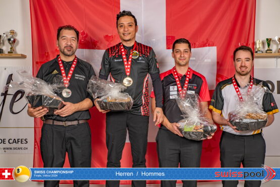 Am Wochenende vom 29. November bis zum 1. Dezember fanden in Vétroz/VS die Finalspiele im Poolbillard statt. Die Vorausscheidungen wurden wie üblich bereits in den letzten zwei Monaten gespielt. Nun ging es in allen Kategorien um die Farbverteilungen der Medaillen.