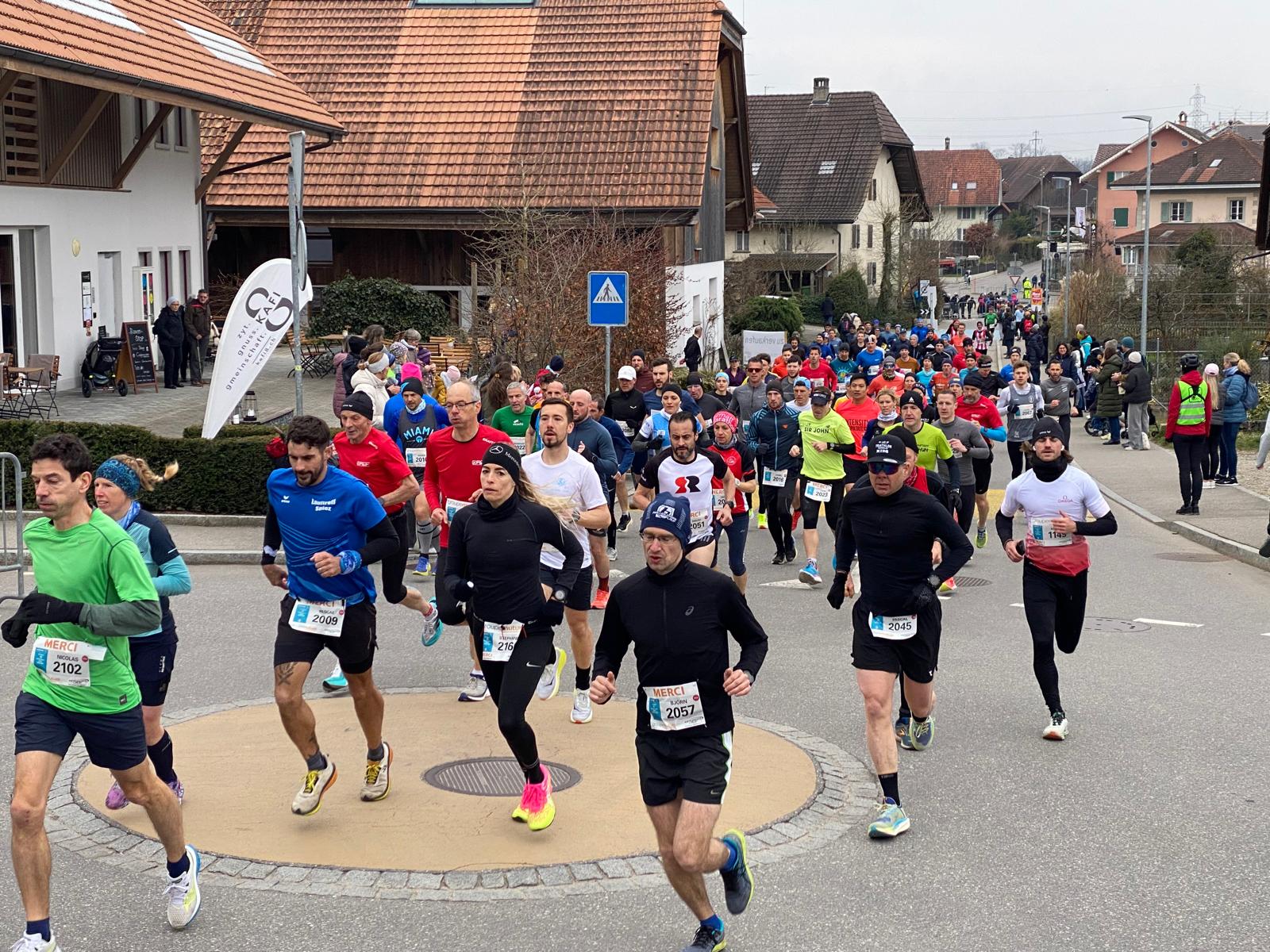 Die Temperaturen um 5 Grad stellten am diesjährigen Kerzerslauf mehr für die etwas weniger zahlreich erschienenen ZuschauerInnen ein Problem dar als für die LäuferInnen. Für diese waren die Bedingungen – abgesehen von der leichen Bise -gar nicht so schlecht, wie sich viele am Ziel äusserten. 7164 meldeten sich zum diesjährigen «Swiss Seasons Opening» an, wie sich der Kerzerslauf offiziell nennt. Damit stieg die Anzahl der Teilnehmenden gegenüber dem Vorjahr erneut deutlich an und nähert sich allmählich wieder den Werten aus der Zeit vor Corona.