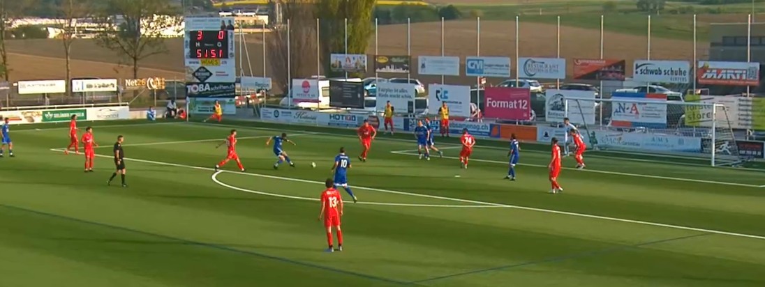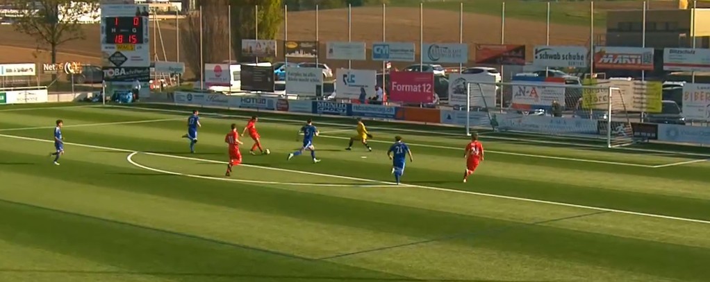 In der 15. Minute konnte Nicola Aerschmann im Strafraum vom Torhüter nur mit einem Foul gestoppt werden. Der danebenstehende Cedric Jung schob den Ball ins Netz, doch der Schiedsrichter wartete den Vorteil nicht ab, pfiff zu früh und musste einen Elfmeter geben. Diesen verwandelte Enea Rostetter sicher zur 1:0 Führung.
