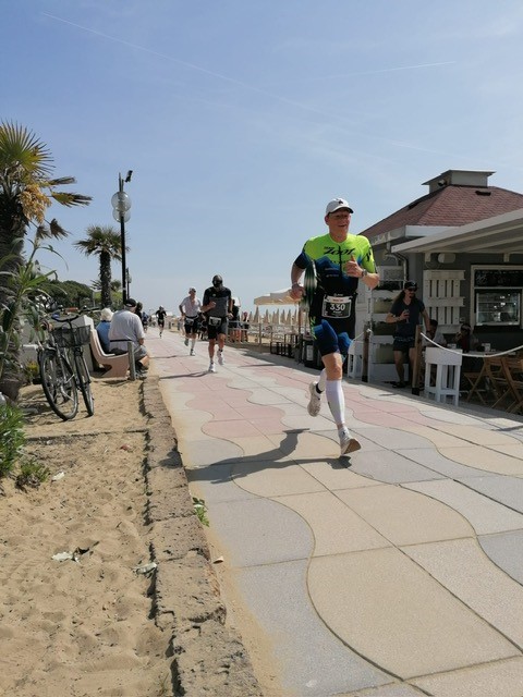 Der abschliessende Halbmarathon, der in drei Runden durch die lange Allee in Jesolo und dem Strand entlang zum Ziel beim Leuchtturm führte, konnte ich in der Zeit von 1h39'09" absolvieren - für mich eine super Zeit. Dies ergab schlussendlich eine Zielzeit, inklusive der Wechselzeiten – Schwimmen / Rad und Rad / Lauf- von 4h43'57" und dem 5. Platz in der Altersklasse 60-64.