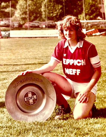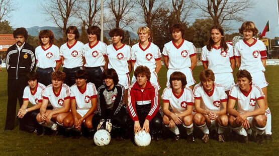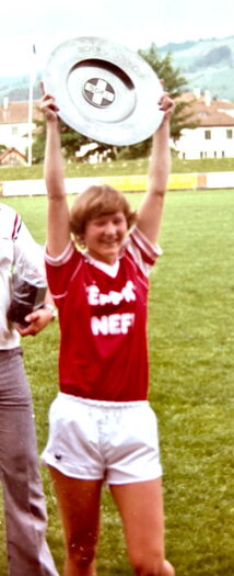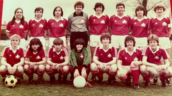 40 Länderspiele, sieben Tore, auf internationaler Ebene. Die Leistung von Helga Lüthy (ledig Moser) kann sich sehen lassen. National hatte sie noch viel grössere Erfolge mit der Damenmannschaft des FC Berns: mehrere Meistertitel und Cupsiege.