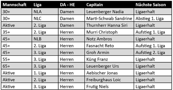 3 Mannschaften sind aufgestiegen, 1 Mannschaft abgestiegen und die restlichen Mannschaften konnten den Ligaerhalt sicherstellen.