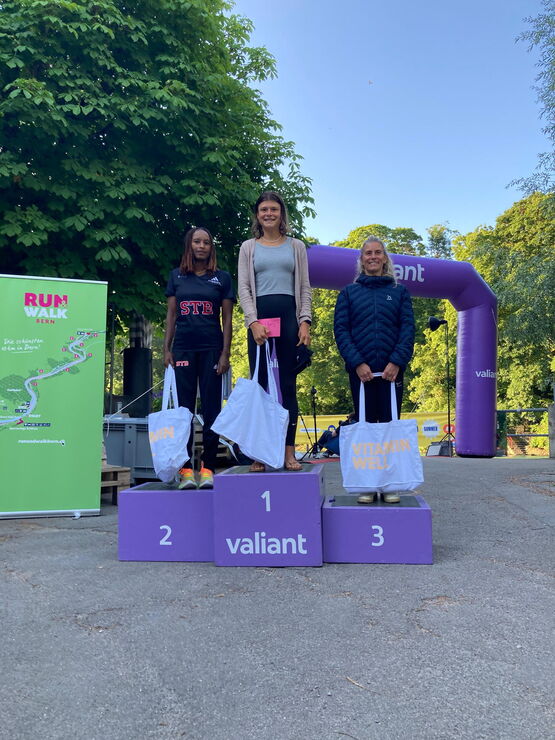 Und genau so war es. Die ruhige und friedliche Atmosphäre bei Sonnenaufgang füllten mich mit Energie, so dass ich das ganze Rennen sehr locker und doch zügig laufen konnte. Ich konnte es richtig geniessen. Nach dem Lauf wurde man am Ziel mit Kaffee und Gipfeli empfangen. Danach nahm ich noch ein erfrischendes Bad in der Aare, bevor ich als Siegerin der Frauen aufs Podest durfte mit einer Laufzeit von 38:50. Für mich persönlich war das der perfekte Start in den Sonntag.