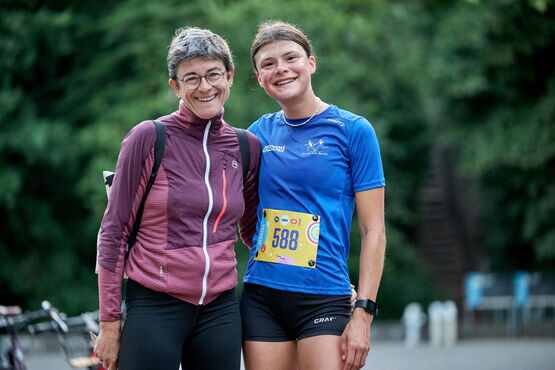(Seraina Stettler (rechts) mit Noemie Hess am "100 von Biel".)