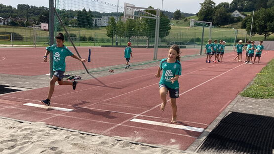 Fünf Tage lang jagten 37 Mädchen und 38 Knaben in der Orientierungsschule der Region Murten den Bällen hinterher, übten Saltos auf dem Trampolin, lachten gemeinsam und tobten sich in verschiedensten Spielen und Sportarten aus. «Es hat super Aussenplätze – mit Rundbahn, Weitsprunganlage, Rotem Platz, Fussballplatz und Beachvolleyballfelder. So können wir aus dem Vollen schöpfen», erklärte Campleiter Mauro Ruef. Möglich wurde das polysportive ALDI Sportcamp durch die langjährige Partnerschaft zwischen der Gemeinde Murten und MS Sports, dem grössten Sportcamp-Anbieter der Schweiz.