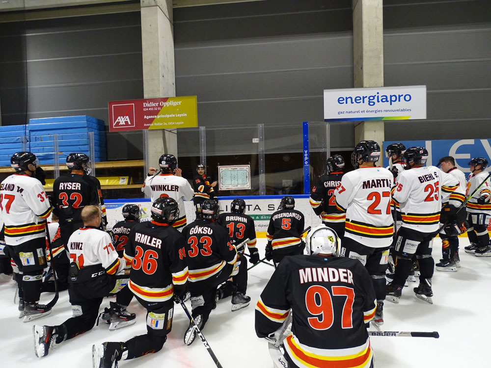 Die Reise startete am Freitag um 16:30 Uhr bei der OSRM. Gemeinsam fuhr die Mannschaft mit dem Busunternehmen Wieland Bus AG ins Waadtland. Viel Zeit zum Ankommen blieb nicht: Bereits um 20:15 Uhr stand die erste Trainingseinheit auf dem Eis. Unter der Leitung von Philippe Furrer absolvierte das Team eine intensive Einheit, die den Grundstein für ein sportliches Wochenende legte.