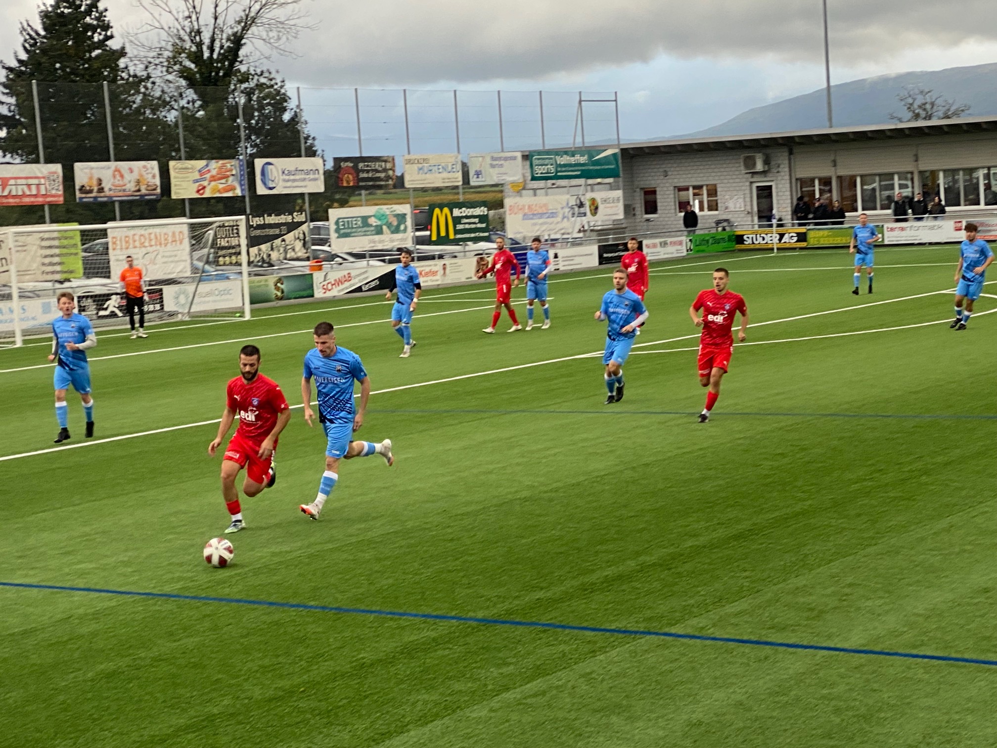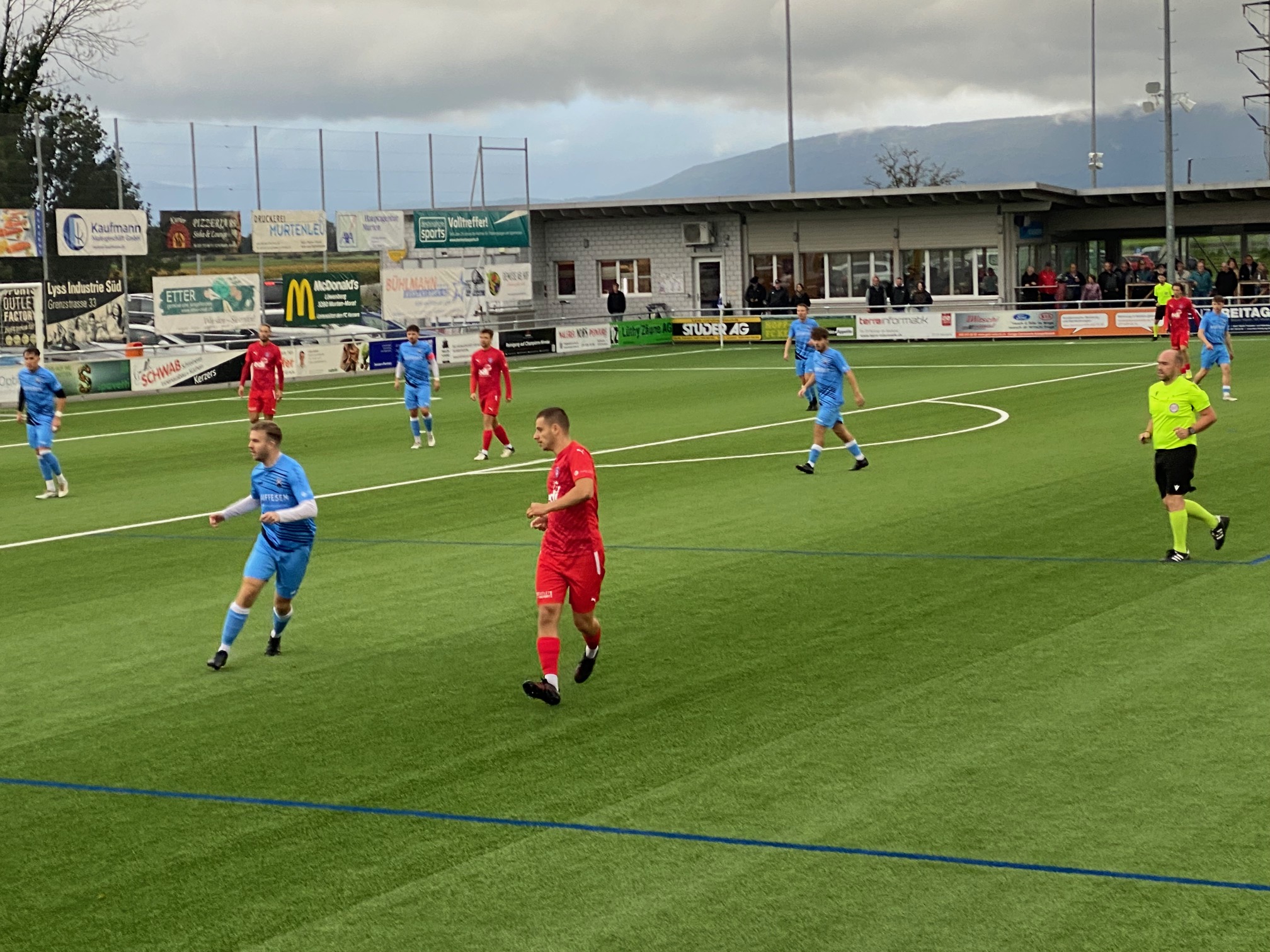 Bereits in den ersten Minuten spielten beide Teams guten Fussball und kamen zu guten Torchancen. Das erste Tor erzielte jedoch der Gast aus dem Oberland. In der 11. Minute schoss Reto Wicki das 0:1.