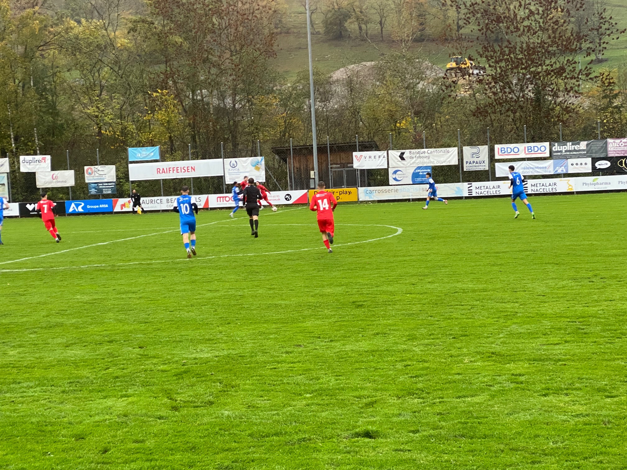 Lange war unklar, ob in Grandvillard überhaupt gespielt werden konnte – denn auch im Gruyère-Gebiet regnete es den ganzen Tag. Nach der Ankunft zeigte sich jedoch ein überraschend gut präparierter Platz. Mit zunehmender Spielzeit wurde der Untergrund zwar immer tiefer und schwerer zu bespielen, doch die Bedingungen waren für beide Teams gleich anspruchsvoll.