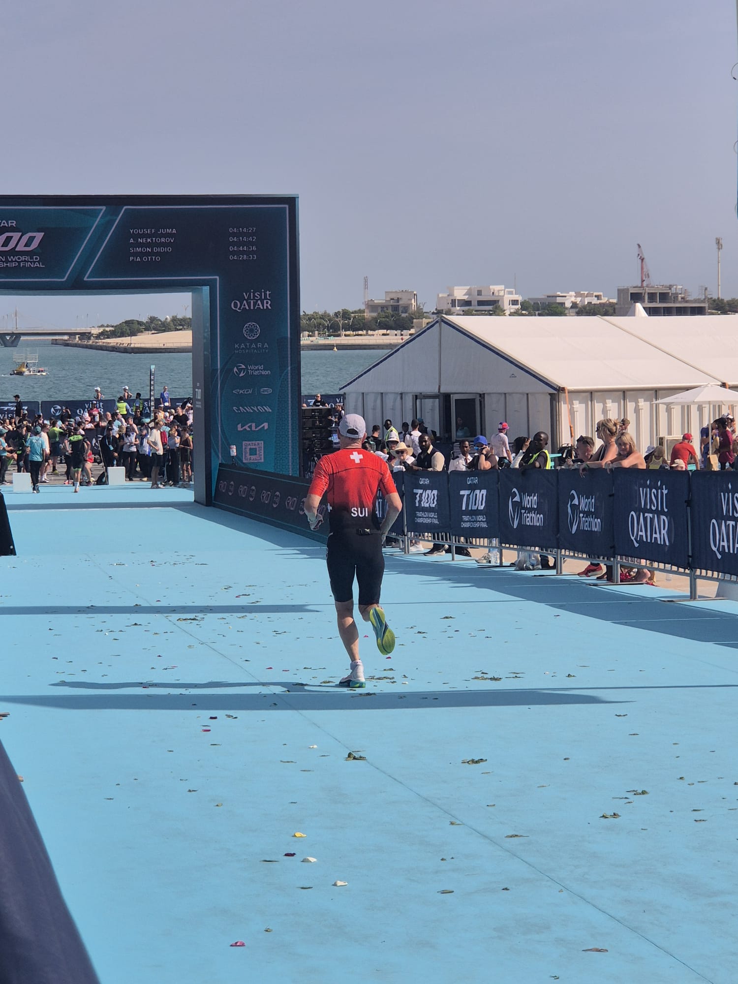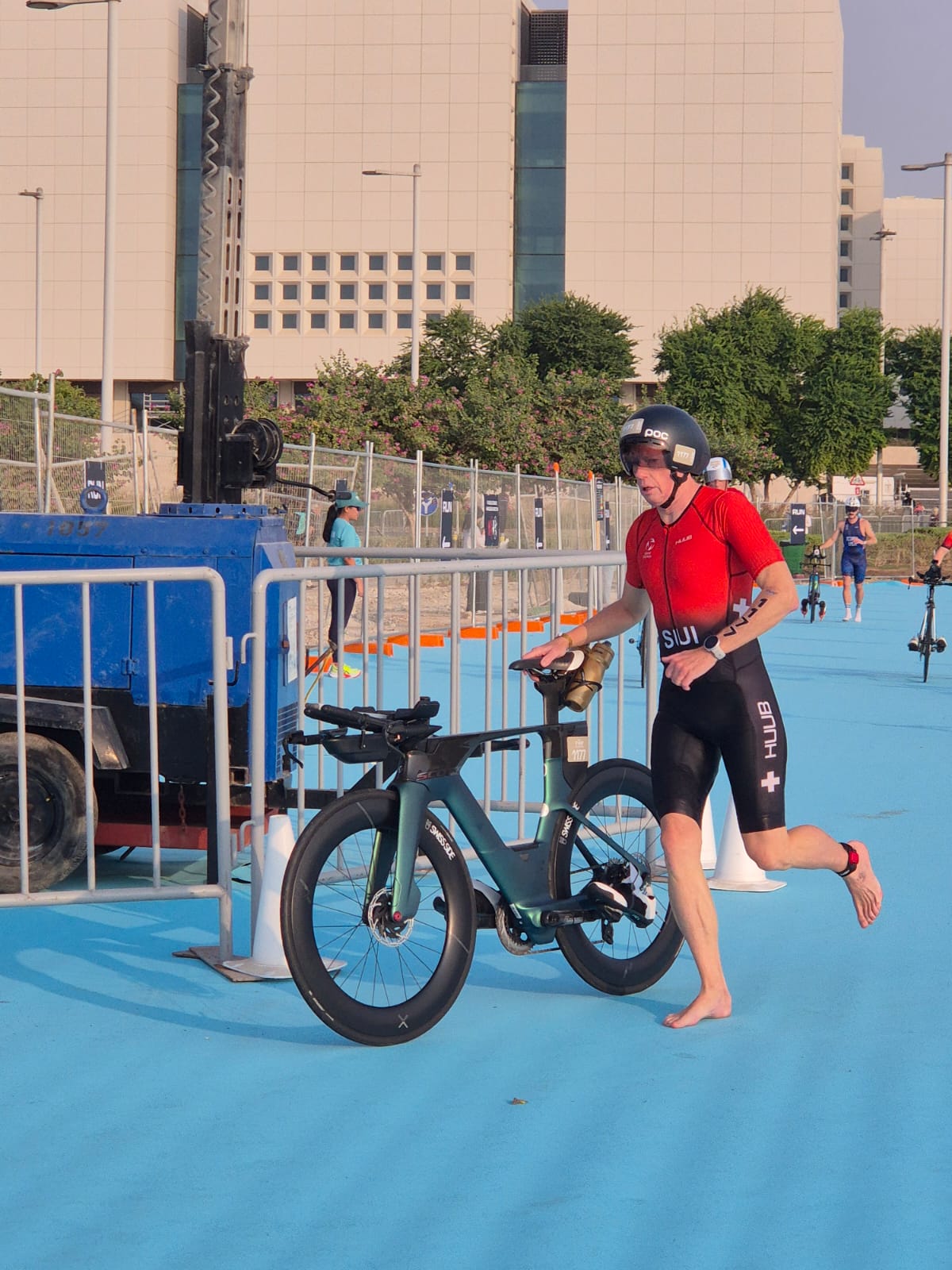 Es war nicht einfach in Doha, 14 Tage zuvor lag ich noch mit 38°C Fieber im Bett und einen Reizhusten habe ich heute immer noch. Dies hat mich beim Velofahren und vor allem beim Laufen recht eingeschränkt – schade, aber es hätte auch ohne Erkältung eine ausserordentliche Leistung gebraucht, um aufs Podium zu kommen.