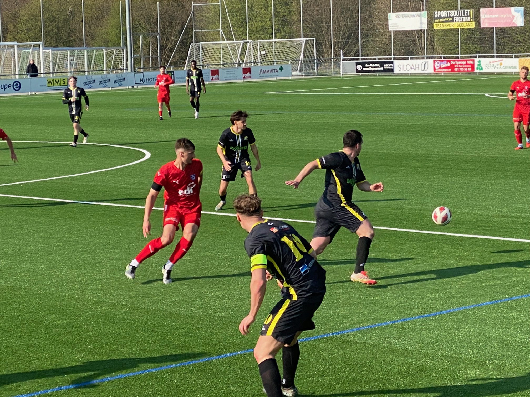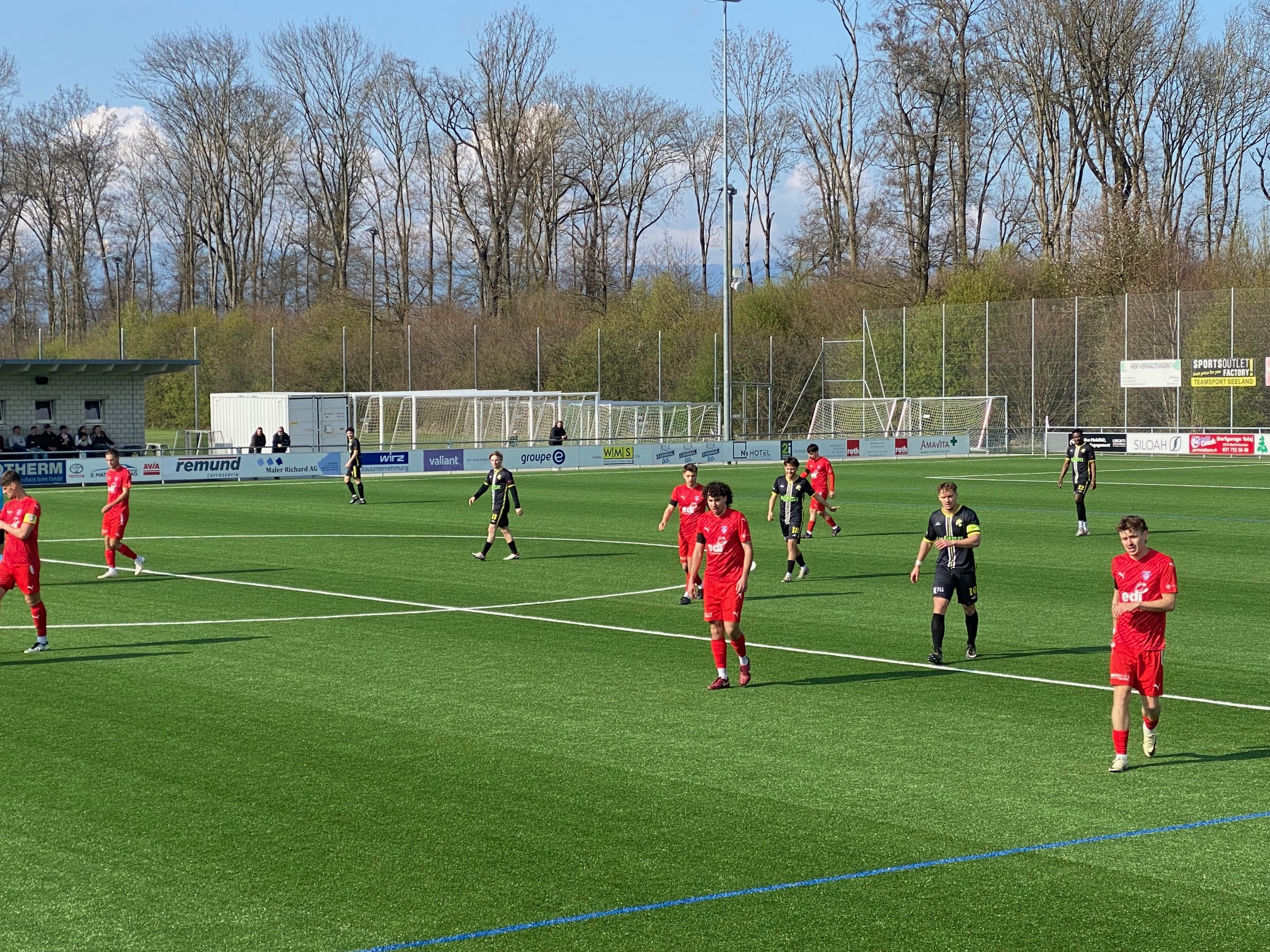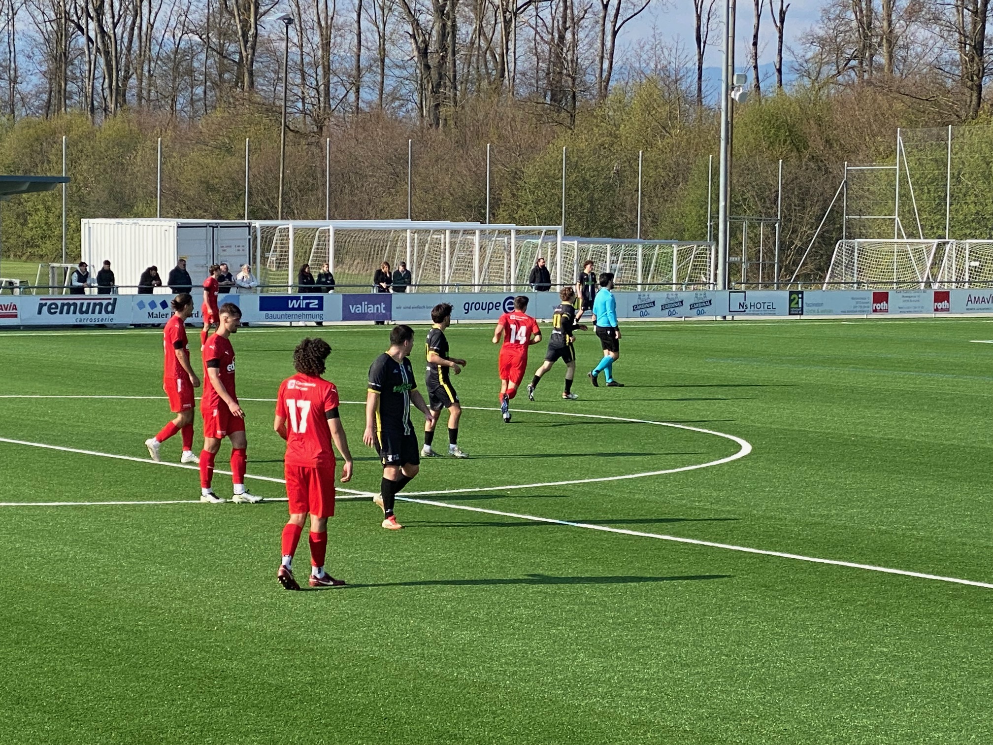 Auch mit der komfortablen Führung gab sich die Heimelf nicht zufrieden und erspielte sich weitere hochkarätige Torchancen. Trotz teilweise sehenswerter Kombinationen wollte vorerst kein weiterer Treffer fallen. Nach rund 30 Minuten wurde Enea Rostetter als letzter Mann auf Höhe der Mittellinie gefoult, als er alleine aufs Tor hätte ziehen können. Der Schiedsrichter zögerte nicht und zeigte die Rote Karte – Domdidier musste fortan in Unterzahl weiterspielen.