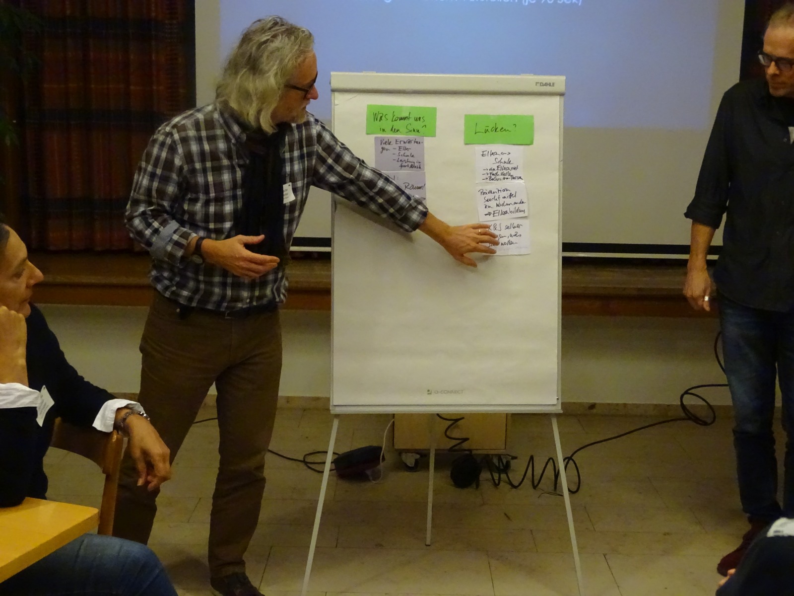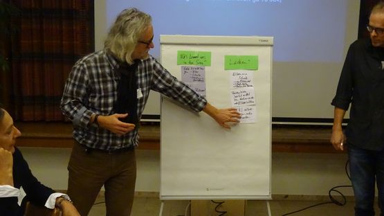 6 / 7BildergalerieErgebnisse werden präsentiert, Alexander Schroeter, Gemeinderat Murten. Durch den Abend führte: Hansjörg Hofmann, Jugendfachstelle Köniz (rechts im Bild). -
