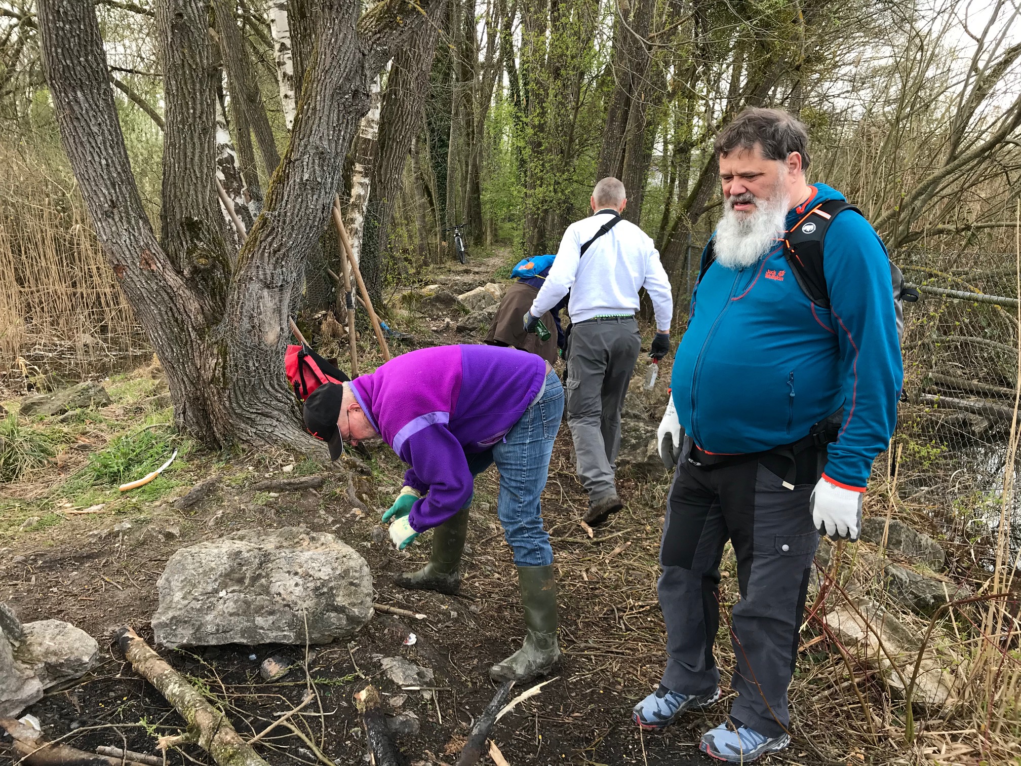 Das Wetter am gestrigen Samstagmorgen sah noch nicht verheissungsvoll aus, es nieselte und der Himmel war trüb, als sich die Mitglieder des Turnvereins Muntelier gegen 8 Uhr versammelten und der Gemeindepräsident von Muntelier, Pascal Pörner, eine kurze Dankesrede an sie richtete. Seit 2014 engagiert sich der TV Muntelier, einer der grössten Vereine der Gemeinde, mit Unterstützung der Mitarbeiter des Werkhofes für die Säuberung des Uferabschnittes nach dem Winterhalbjahr. «Wir stellen unsere Arbeitskraft zur Verfügung», erläuterte mir Fahrettin Calislar, Vorstandsmitglied des Vereins, und die Gemeinde sorgt mithilfe der Werkhofmitarbeiter für den Abtransport und die Entsorgung von angespültem Schwemmholz und Schilf, aber auch von Abfällen unserer Zivilgesellschaft.