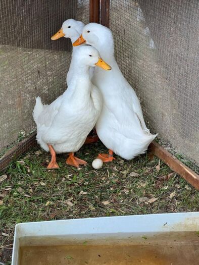 In Körbchen arrangiert, wurden die Legeergebnisse der Vögel präsentiert, vom Emu-, über das Enten-, Hühner- bis hin zum kleinen Wachtelei. Besonders hübsch, das blaue Ei der Ameraucana, eine amerikanische Hühnerrasse, die auch hier gezüchtet wird und ebenfalls zu sehen war.