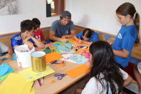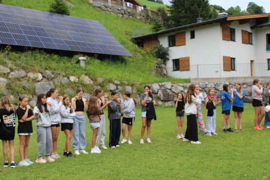 Zuletzt sind wir in die Turnhalle und haben versucht so viele Pokerchips wie möglich einander zuzuschiessen. Anschliessend haben wir noch ein Musikquiz gemacht. Dann gab es Znacht, welches von den ältesten Teilnehmer:innen serviert worden ist. Wir konnten zwischen mehreren Speisen wählen. Zum Abschluss des Tages gab es noch eine Disco, welche sehr viel Spass gemacht hat.