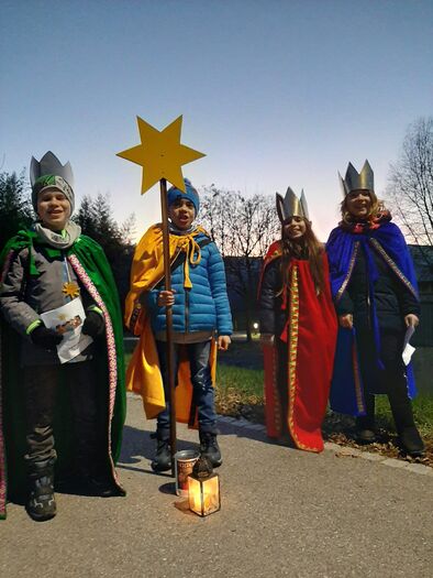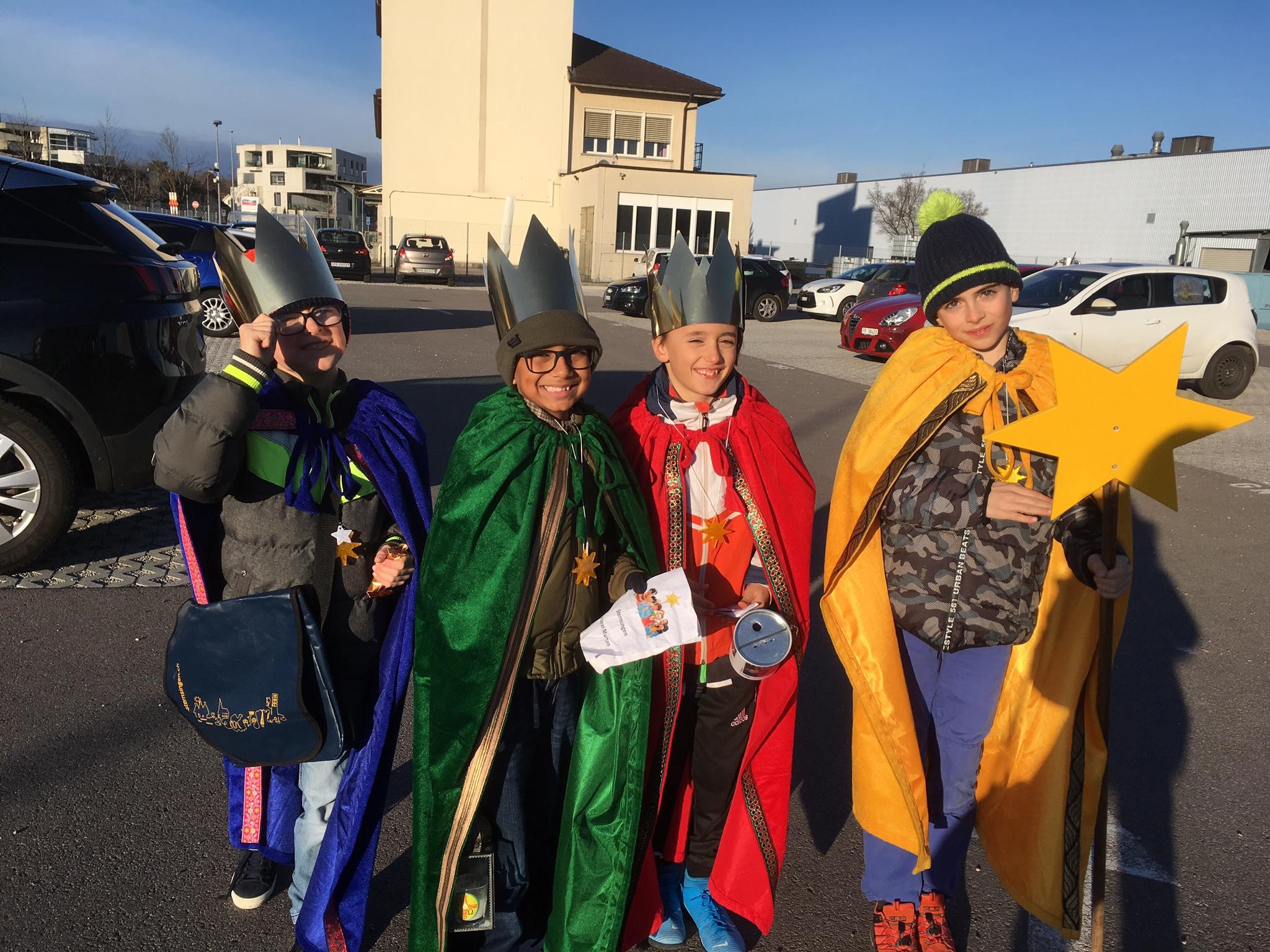 Am Samstag, 11. Januar waren in Murten, Kerzers und Umgebung Murten 13 Gruppen unterwegs. Das sei toll, freut sich Lukas Hendry, Verantwortlicher des Sternsingens in der Pfarrei Murten. Besonders freut ihn, dass sich in diesem Jahr gleich zwei französische Gruppen auf den Weg gemacht haben. Dank dem Engagement von Frau Elisabeth Peham, konnte dies in diesem Jahr umgesetzt werden. Nach der zweisprachigen Aussendungsfeier schwärmten die acht Gruppen von Murten in die verschiedenen Quartiere aus, eine fuhr sogar bis nach Courgevaux. Die Gruppen erlebten unterschiedliche kleine Geschichten, die sie beim Eintrudeln im Pfarrhaussaal um 18 Uhr zum Besten gaben. Nach vier Stunden unterwegs, freuten sich nun alle auf die Pizzas und dem Film.