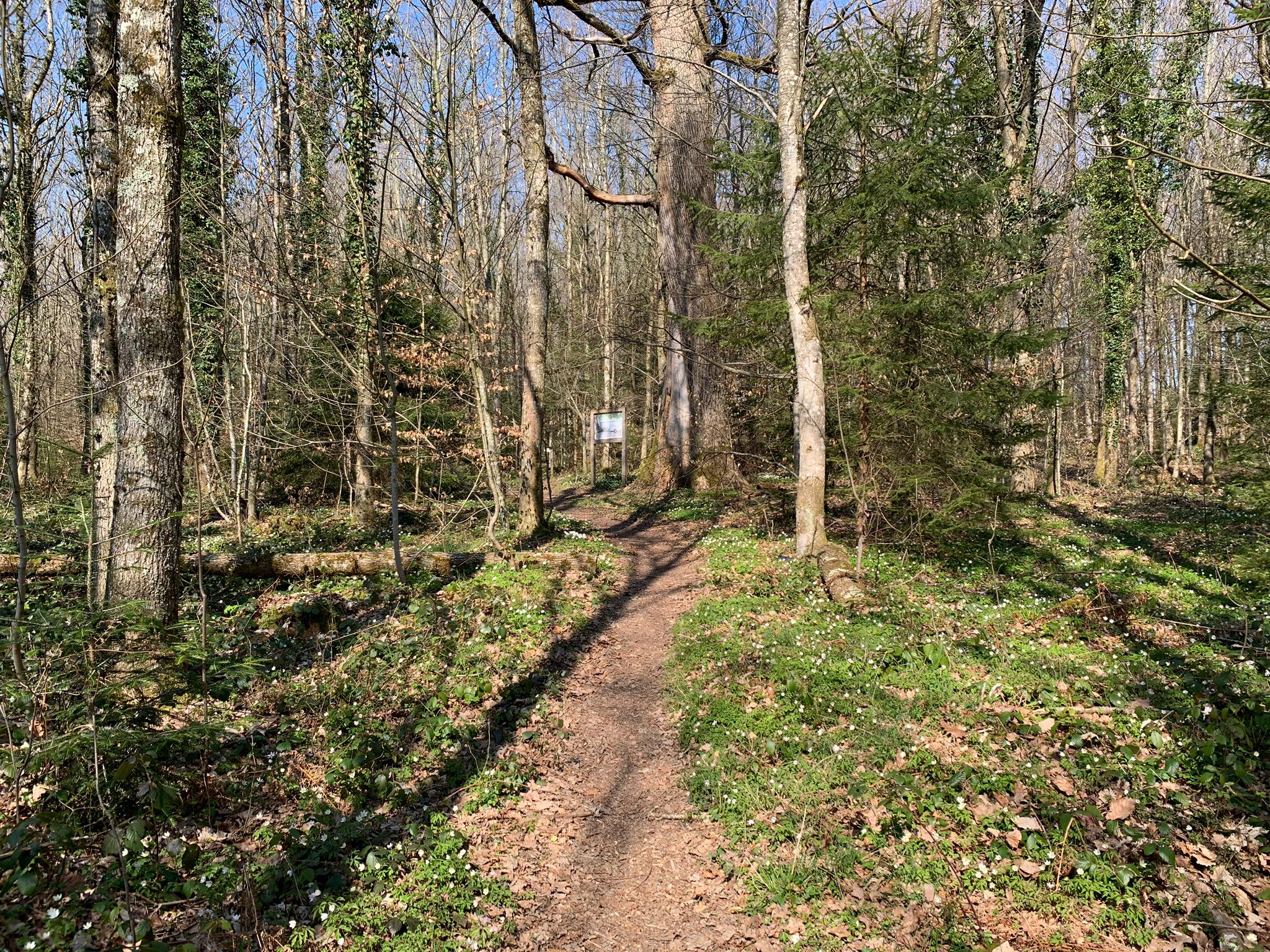 Heute gehe ich mit meinem Kind in den Galmwald: Von Murten her fahren wir in Richtung Salvenach, im grossen Kreisel schräg links nach Jeuss/Liebistorf abbiegen. Eingangs Jeuss links abbiegen zum Alterszentrum und Anfang Wald parkieren. Achtung: die ganze Zooanlage beim Alterszentrum ist aufgrund des Coronavirus geschlossen und nicht zugänglich!
