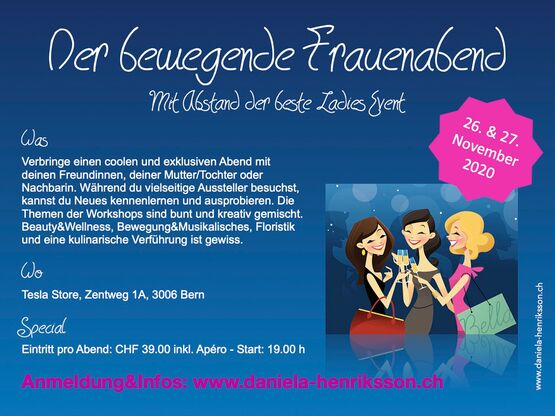 Die heimische Seeländerin Daniela Henriksson organisiert am Donnerstag, 26. November & Freitag, 27. November 2020 in den Räumlichkeiten des Tesla Store am Zentweg 1A in Bern einen Abend nur für die Frau.
