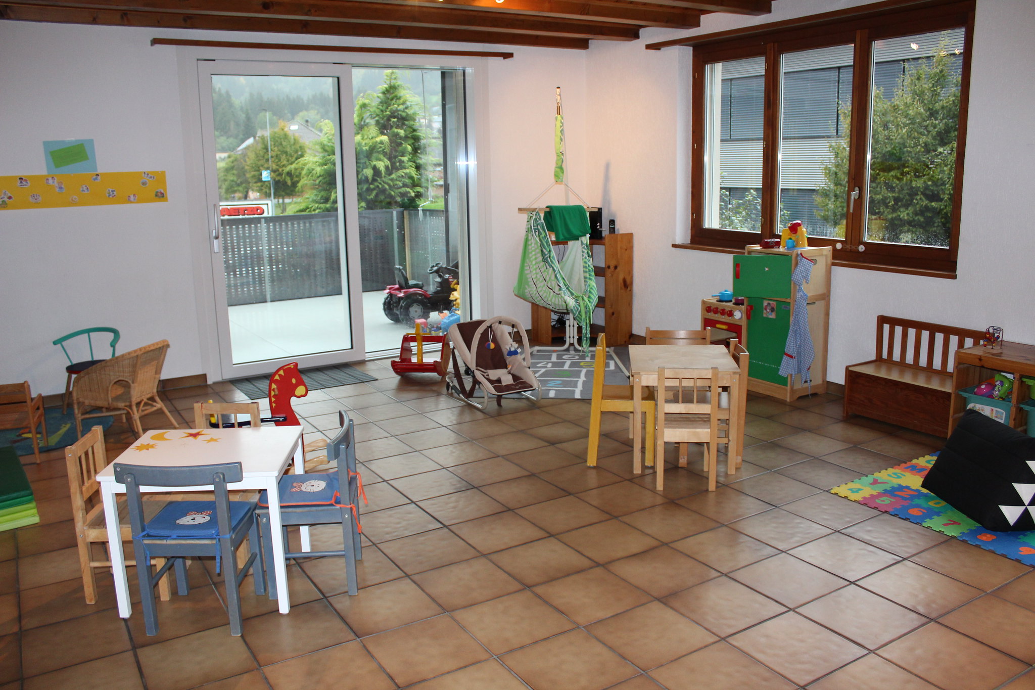 Die Kita ist in einer Wohnung gegenüber der Extramet eingerichtet. Die Räume sind gross, sie ermöglichen eine optimale Ausgestaltung des Tagesprogramms. Es gibt ein Ruhe- und ein Bastelzimmer, ein grosses Spielzimmer, einen Essraum und einen Wintergarten, der gerade in der warmen Jahreszeit mehr Platz zum Spielen bietet. Ausserdem liegt hinter dem Gebäude eine Spielwiese und in unmittelbarer Nähe ein Spielplatz.
