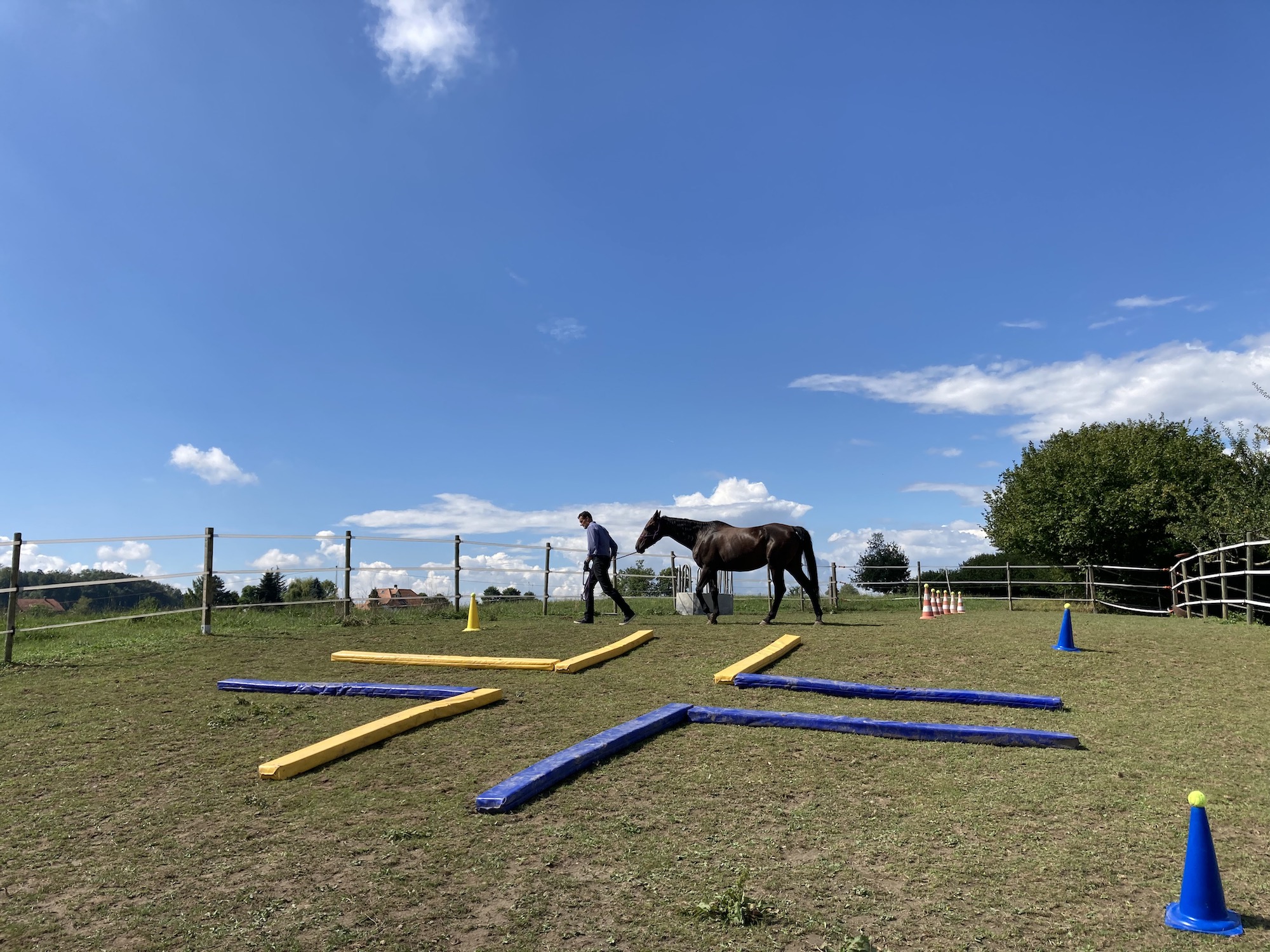Tageskurs BLAU und GELB - Training Pony/Pferd Mensch: Eine leicht zu erledigende Trainingsmethode, welche wenig Zeit in Anspruch nimmt. Du trainierst dich und deinen Partner (Pony/Pferd) an der Longe oder auf dem Pony/Pferd. Das BLAU und GELBE Trainingsmaterial gibt deinem Pony/Pferd den direkten Zugang zum Gehirn, was eine gute Möglichkeit bietet, das Tier wieder ins Gleichgewicht zu bringen.