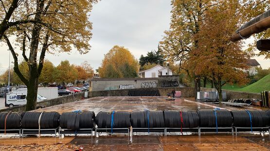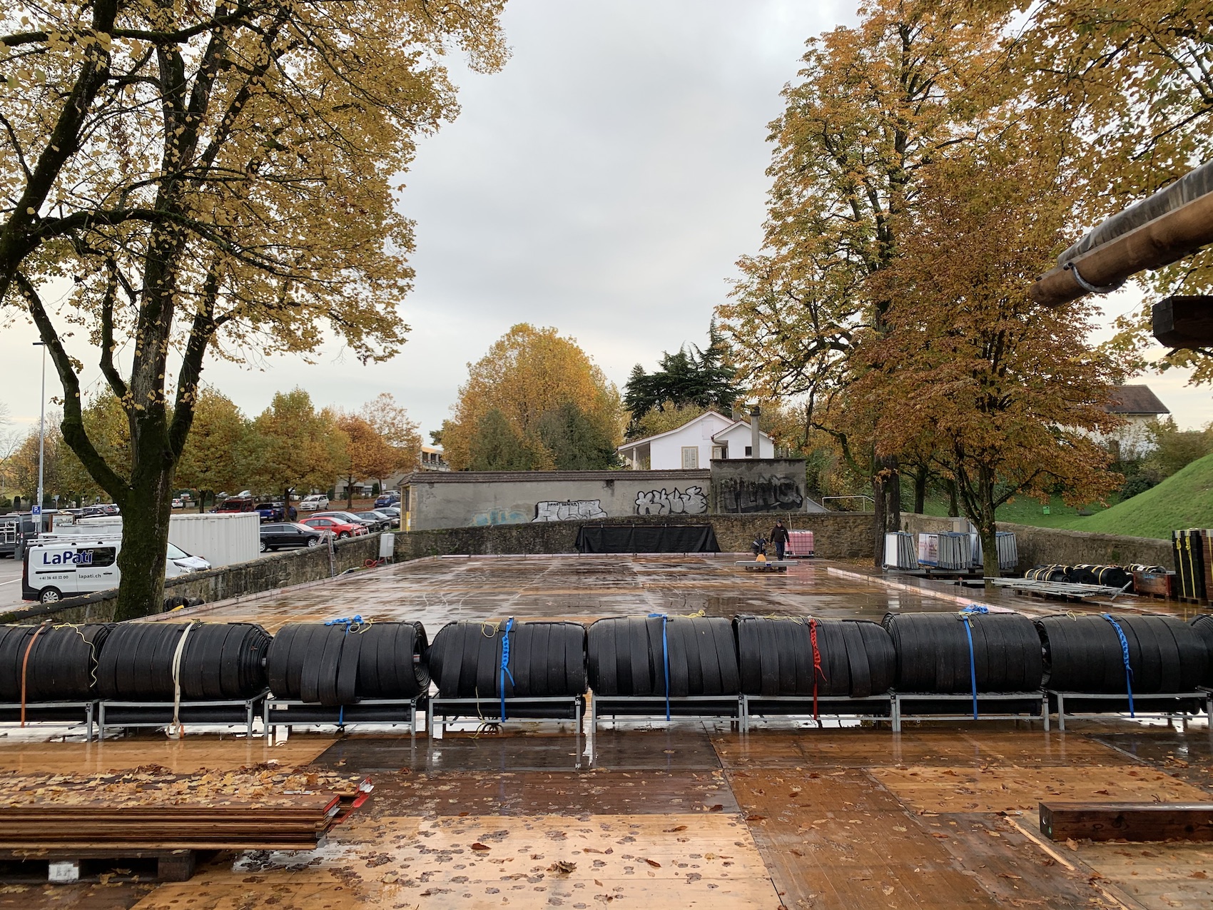 Schon ist es wieder soweit: Die Temperaturen sinken, die Blätter fallen, der Winter naht. Pünktlich bauen deshalb Bauarbeiter und Freiwillige die Infrastruktur für Murten on Ice auf, bevor die Eisbahn am 6. November um 08.30 Uhr ihre Tore öffnet. Es ist ein besonderes Jahr für das Projekt: Murten on Ice feiert sein zehnjähriges Jubiläum! Auch deshalb hat man beim Projektteam Grosses geplant und dafür keine Kosten und Mühen gescheut. Das Ergebnis ist nun ein schönes Chalet aus Holz, das übers Wochenende aufgebaut wurde und direkt neben der Eisbahn steht. Das Eis selbst kommt natürlich noch.