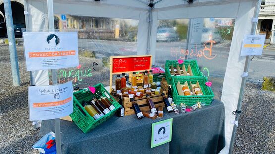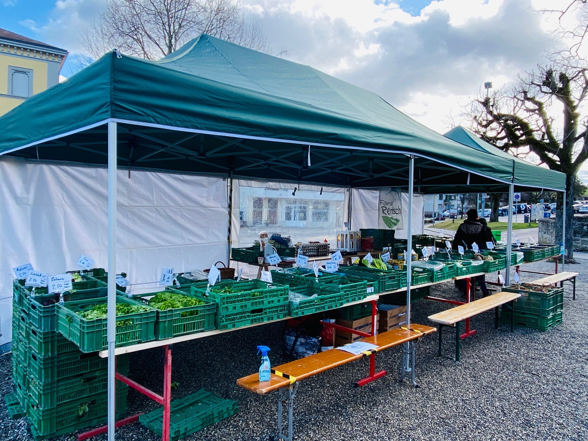 Die Familie Rentsch verkauft seit dem Beginn des Wochenmarktes vor ungefähr 12 Jahren Gemüse, Obst und weitere Spezialitäten vom Hof. Laut Corinne Rentsch beginnt die neue Saison mit keinen grossen Neuerungen. Durch grössere Abstände zwischen den Ständen und präzisere Hygienevorschriften wird für die Verkaufenden und die Käufer*innen ein hohes Mass an Sicherheit gewährt.