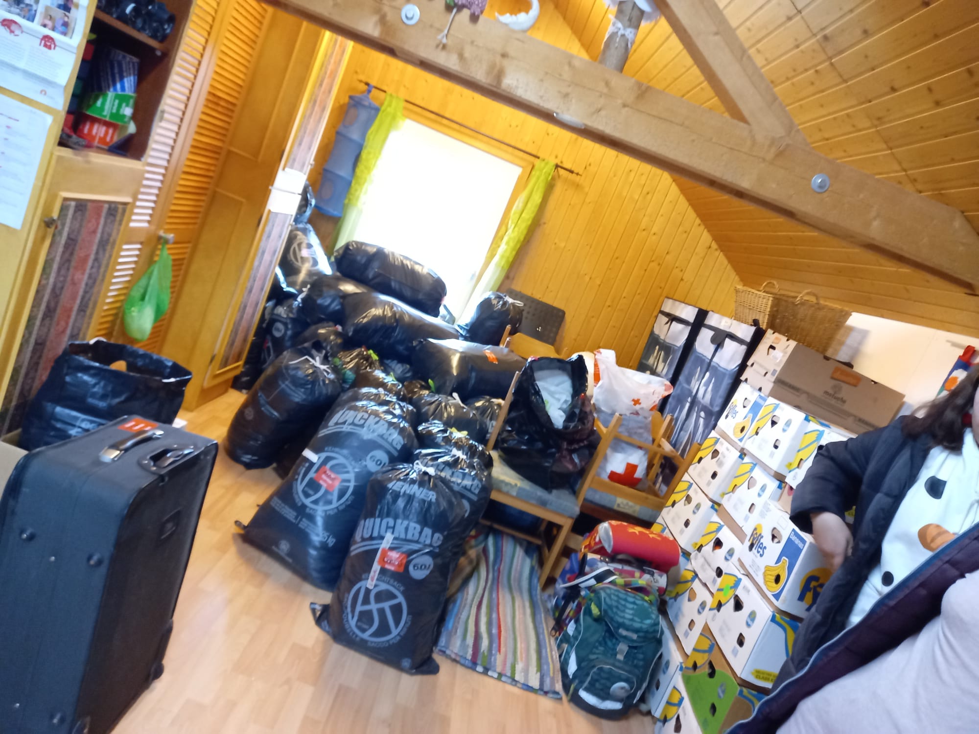 Das ganze letzte Jahr hindurch durften wir wieder viele Kleider und Schuhe in unserer Kleidersammelstelle an der Muntelierstrasse 10 in Murten entgegennehmen. So konnten wir Ende Dezember 2021 wieder einiges in den Camion von "Licht im Osten" verladen. Dieses Mal waren es 410 Säcke a 60 Liter, das sind 110 Säcke mehr als im Vorjahr und 74 Bananenschachteln mit Schuhen.
