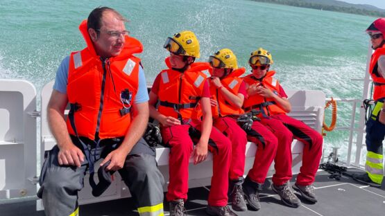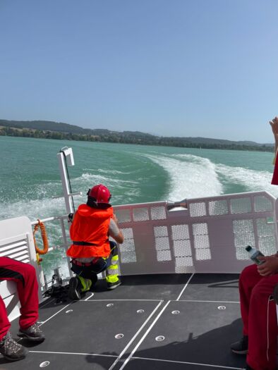 Das Highlight des Tages stellte für viele das Polizeiboot dar. Nachdem den Jugendlichen zunächst die grundlegende Ausstattung präsentiert wurde, ging es danach mit rund 65 km/h über den Murtensee. Die Schnellfahrt bereitete den Teilnehmer*innen sichtlich Freude, Angst schien dabei kaum eine*r zu haben. Doch auch das freie Schwimmen stiess auf sehr positive Reaktionen und bot bei 33 Grad und Sonnenschein eine willkommene Abkühlung.