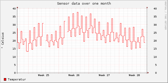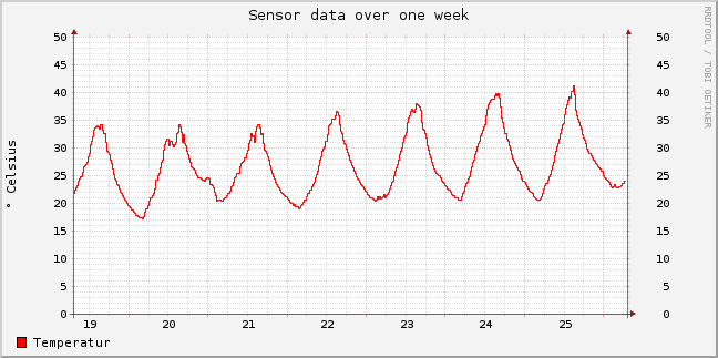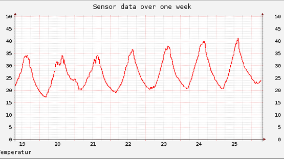 Unsere Diagramme (siehe unten) beweisen es: An zwölf Tagen zwischen Ende KW 25 bis Anfang KW 28 stieg die Lufttemperatur an der Alten Freiburgstrasse diesen Sommer in Murten auf über 31°C. An den Tagen vom 24. bis 26. Juli wurden sogar 40°C geknackt! Dabei wäre die hohe Temperatur alleine kein Problem und leicht zu ertragen gewesen. Die Kombination von hoher Luftfeuchte (> 65%) und Temperaturen von 31°C im Büro machte das Arbeiten drinnen jedoch unerträglich. Tatsache ist also, dass der Klimawandel auch in unserer Region angekommen ist, mit zum Teil verheerenden Auswirkungen!